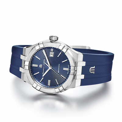 - PULSERA/CORREA: Azul, correa de caucho, con el logotipo "m" de Maurice Lacroix