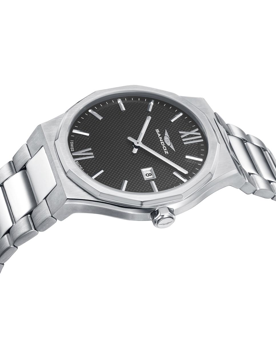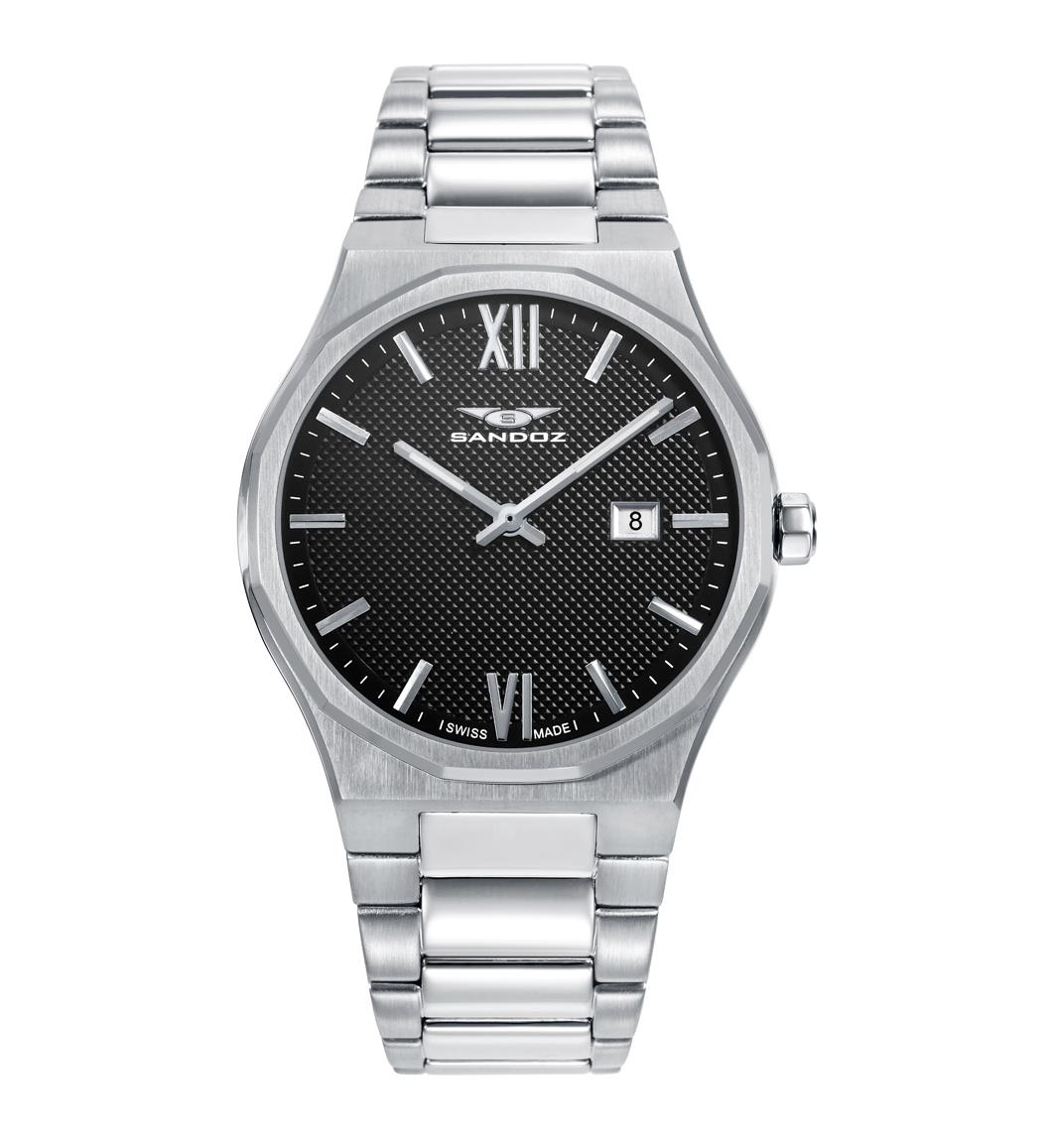 Reloj Hombre Sandoz Style 83013-53, es un reloj extraplano, tiene la caja de acero, con forma circular y bisel facetado. La cadena es de acero sólido. El cristal es zafiro, el movimiento suizo cuarzo, y el display analógico.