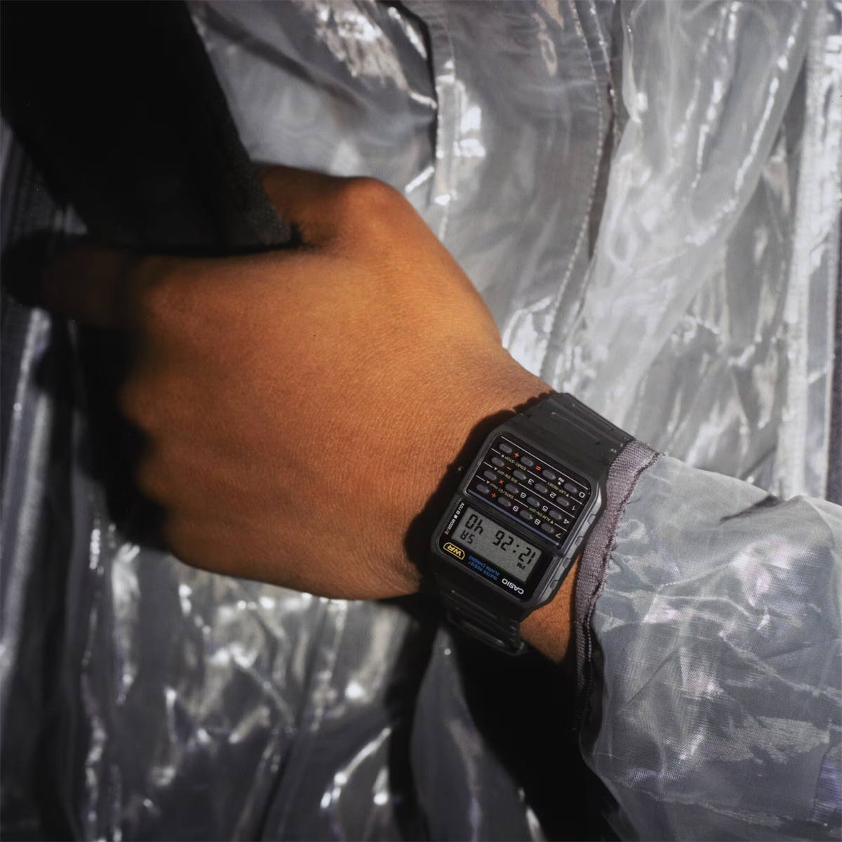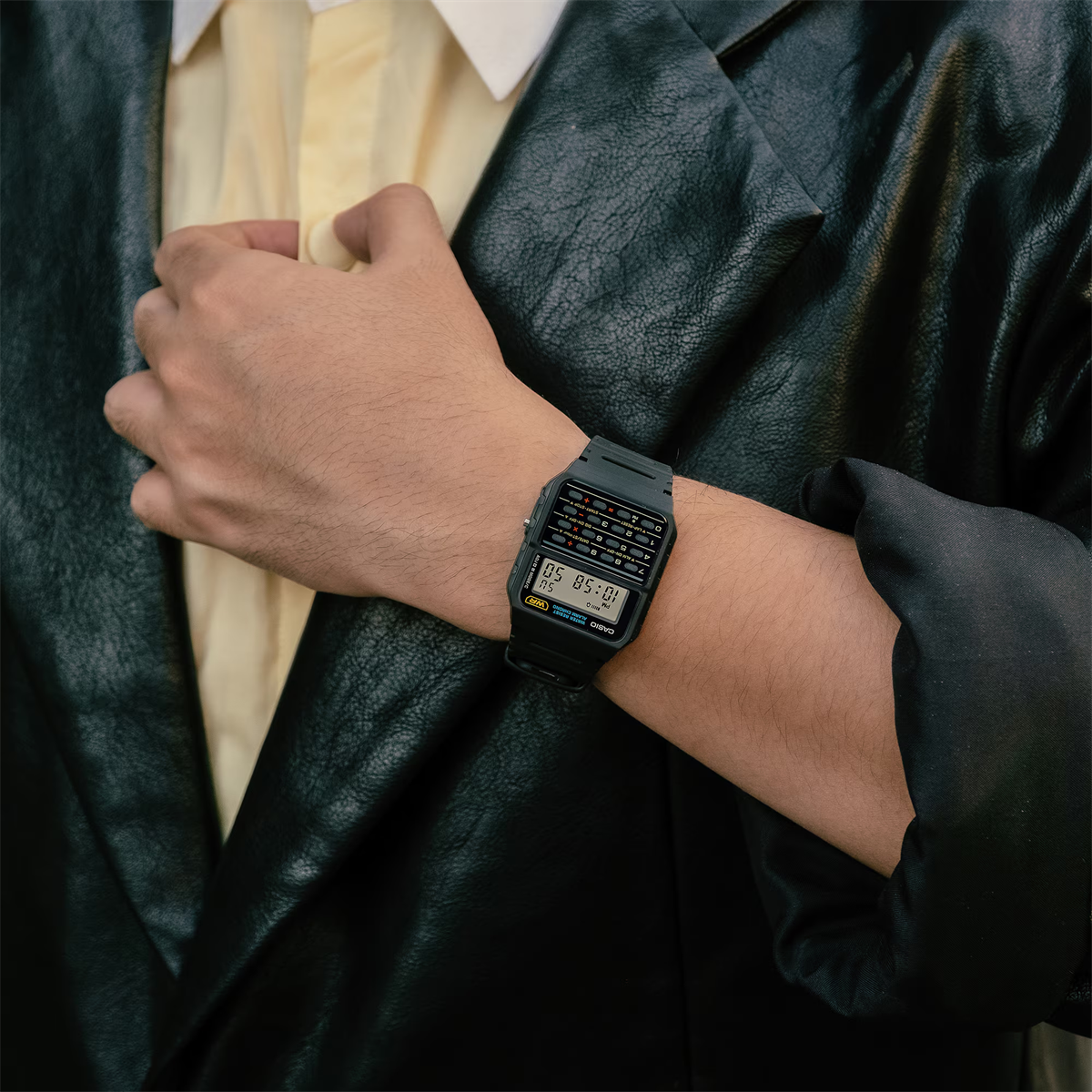 Probablemente el reloj más característico de los años 80: el reloj calculadora. Disponible hoy en día en muchos colores vintage, siempre le da a tu look el toque adecuado. Y no sólo llama la atención, también es resistente a las salpicaduras. ¿Quieres más funciones? Dispone de muchas funciones: calculadora, cronómetro de 1/100 segundos e incluso un segundo huso horario para estar siempre al día. Este reloj es el compañero perfecto para el estilo de vida urbano: estilo y funcionalidad en uno. • Calculadora • Resistente à água • Duração aprox. da bateria: 5 anos • Dois horários