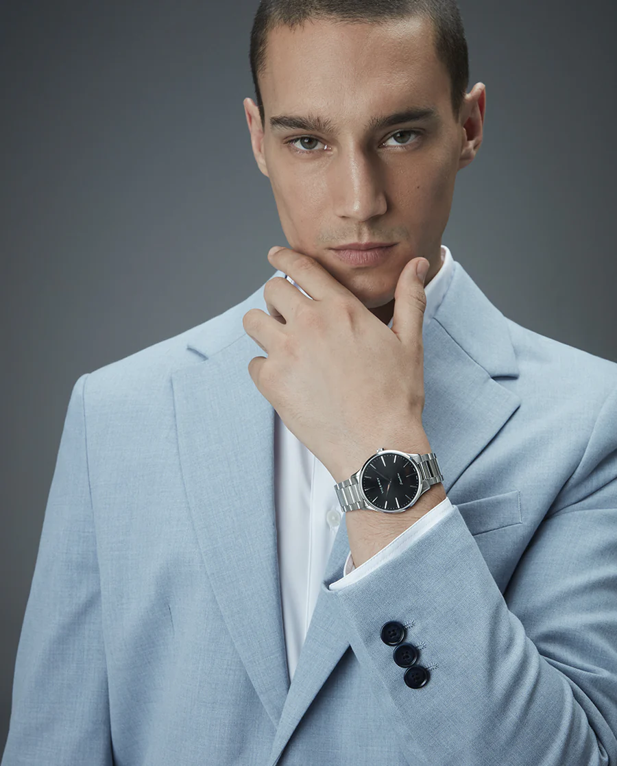 Reloj caja de acero 5 Atm, brazalete de acero, movimiento cuarzo Suizo, Swiss made.